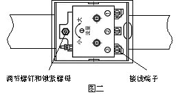 然后,逆時針旋轉(zhuǎn)調(diào)節(jié)螺釘至微動開關(guān)動作時,上切換值 ( 小于設定值時開關(guān)切換 ) 已設定好,調(diào)試完成后將鎖緊螺母旋緊,蓋好罩殼。如下圖所示: