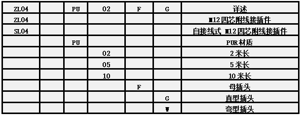 注:繼電器型產(chǎn)品需采用5芯接插件,型號與四芯接插件類似。