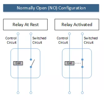 在圖1中,您可以看到在常開(NO)模式下的繼電器的圖示。在這種配置下,當沒有電壓施加到控制電路(繼電器位于圖像的其余部分)時,開關(guān)電路將斷開連接,并且電流將不會流過該連接。當您向控制電路施加適當?shù)碾妷簳r,繼電器中的電磁線圈將激活并拉開開關(guān),使電流流過開關(guān)電路。