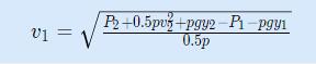 要找到初始水流量,請(qǐng)求解v1。 從兩側(cè)減去P1和pgy1,然后除以0.5p。 取雙方的平方根來獲得方程式: